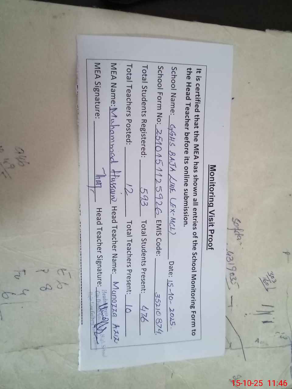 | EMIS Code: 35210874 | Name of School: GGHS BAJA LINE (EX-MCL) | |||