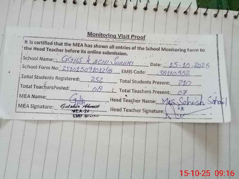 | EMIS Code: 38110352 | Name of School: GGHS KACHI SHHAANI | |||