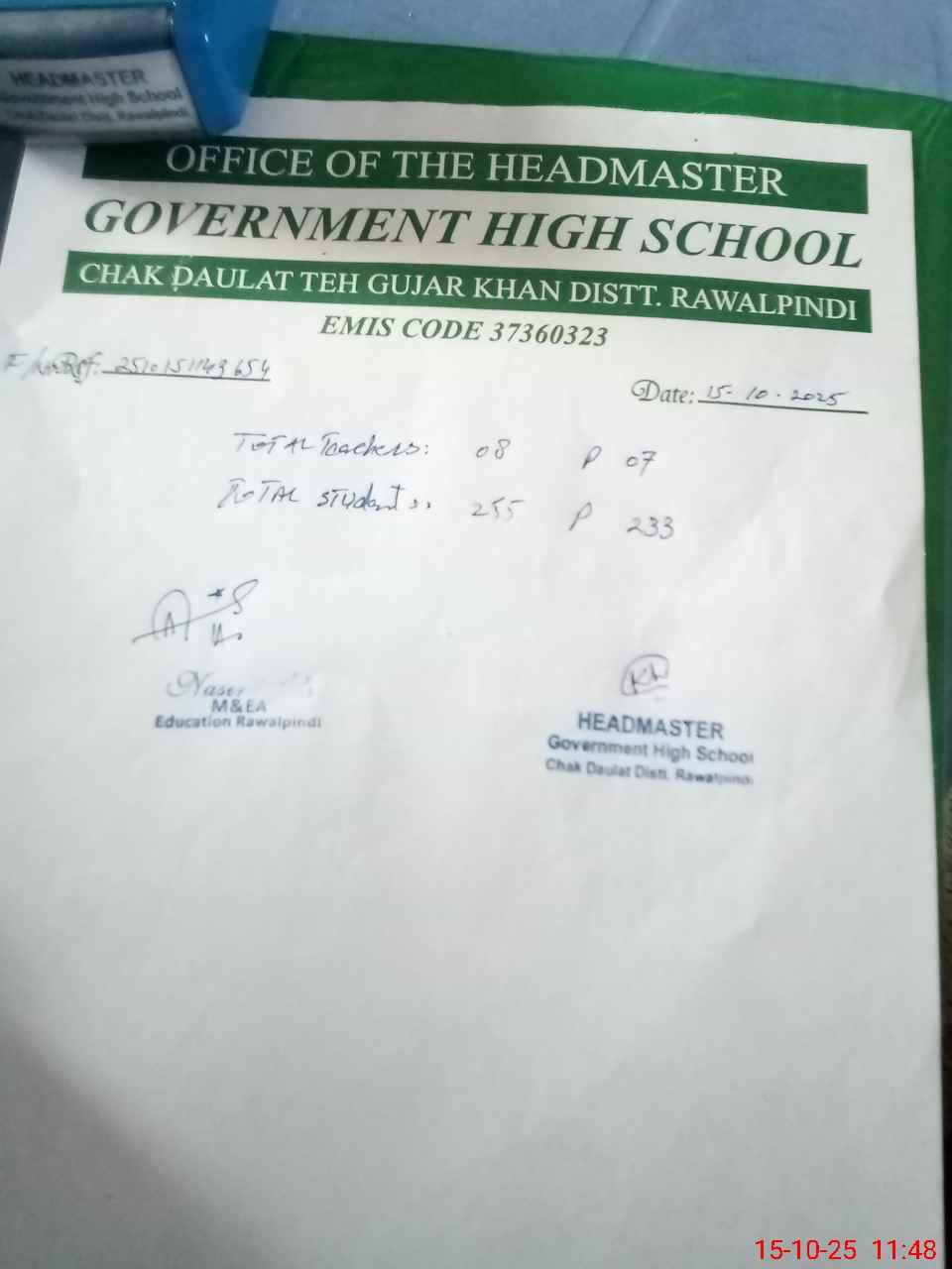 | EMIS Code: 37360323 | Name of School: GHS CHAK DAULAT | |||