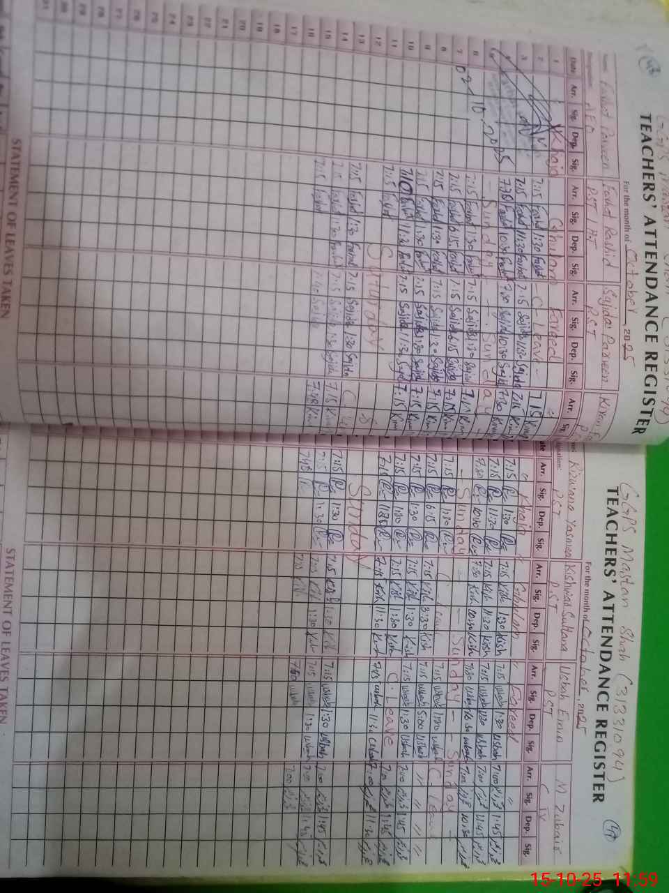 | CNIC | Full Name | Designation | R/C | Absence During Last Calender Month |