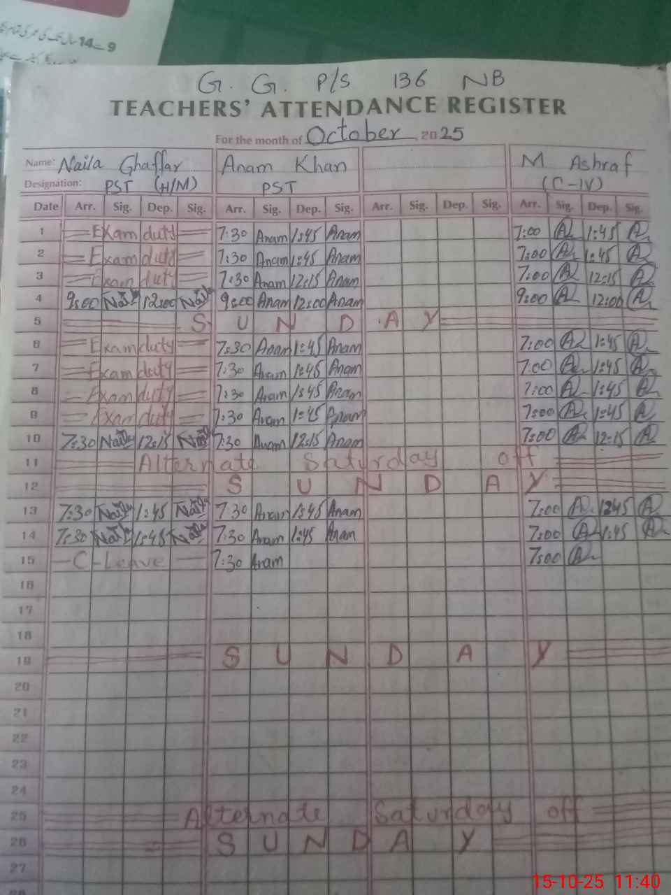 | Name: NA**** GH**** Designation: (School Headmaster's/Headmistress's) PST (SCI,MATH) Phone/Cell Number: 03**** |