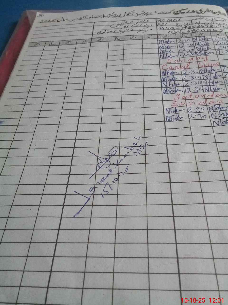 | 35**** | Za**** Na**** | PST | Regular | 0 | 0 | 0 | 0 | 0 | 0 | 0 | 0 | 0 | Exam Duty |