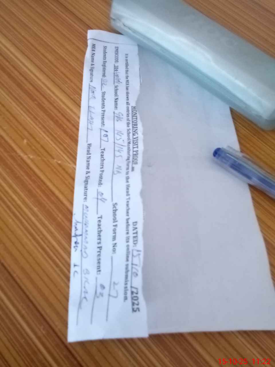 | Attendance Register | Head Teacher | MEA with School | Visit Proof |