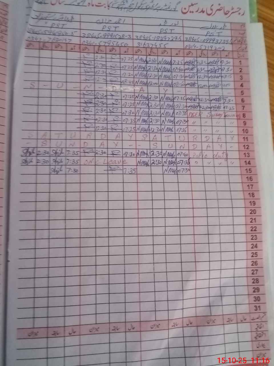 | 38**** | Mu**** Bi**** | PST | Regular | 0 | 2 | 0 | 0 | 0 | 0 | 0 | 0 | 0 | Absent (Un-Authorized) |