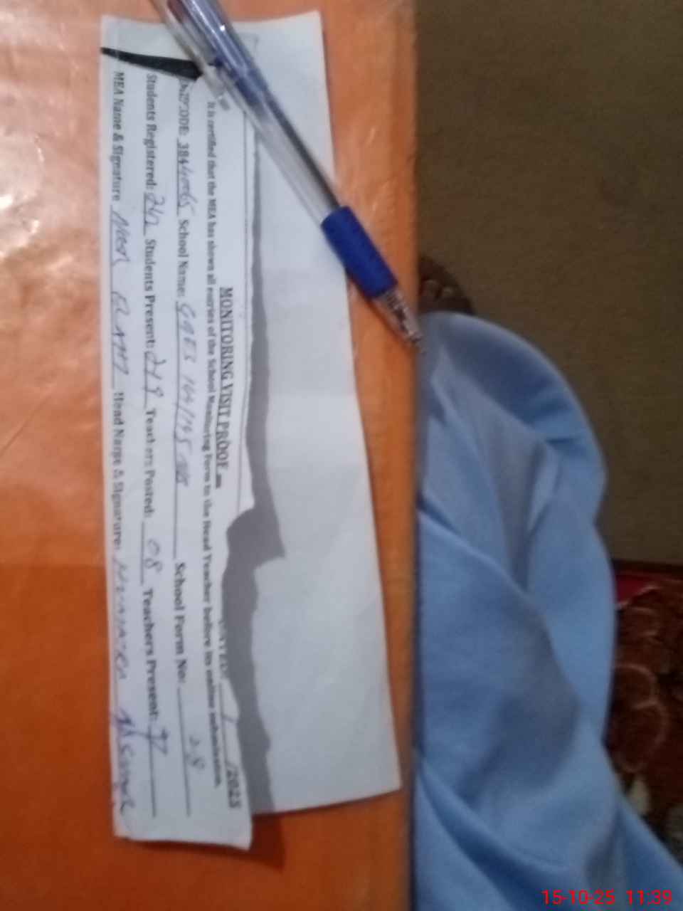 | Attendance Register | Head Teacher | MEA with School | Visit Proof |