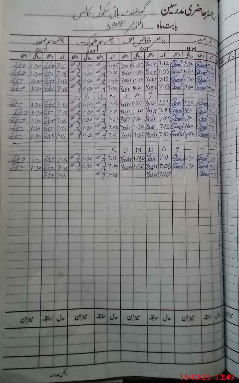 | CNIC | Full Name | Designation | R/C | Absence During Last Calender Month |