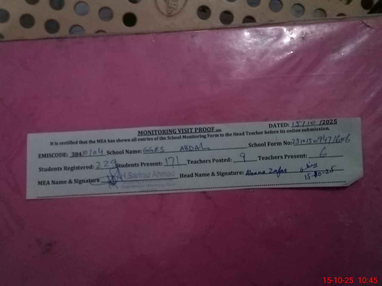 | EMIS Code: 38410104 | Name of School: GGES ABDAL | |||