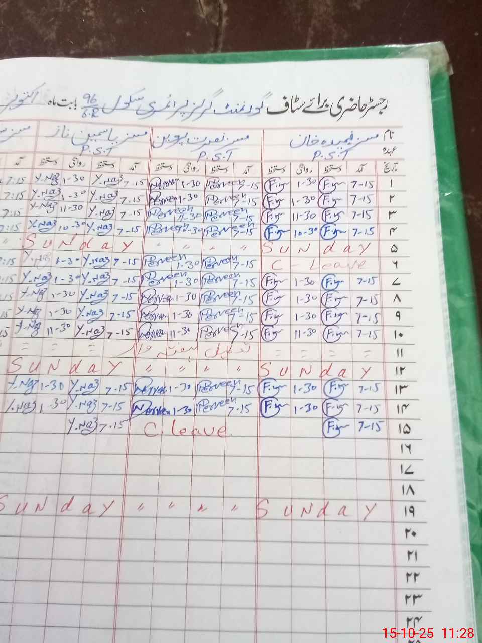 | CNIC | Full Name | Designation | R/C | Absence During Last Calender Month |
