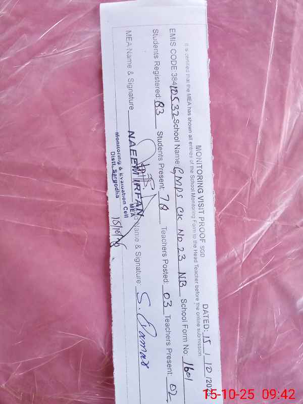 | EMIS Code: 38410532 | Name of School: GMPS CHAK NO.23 NB | |||