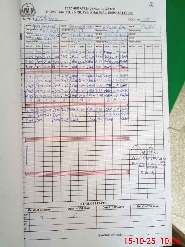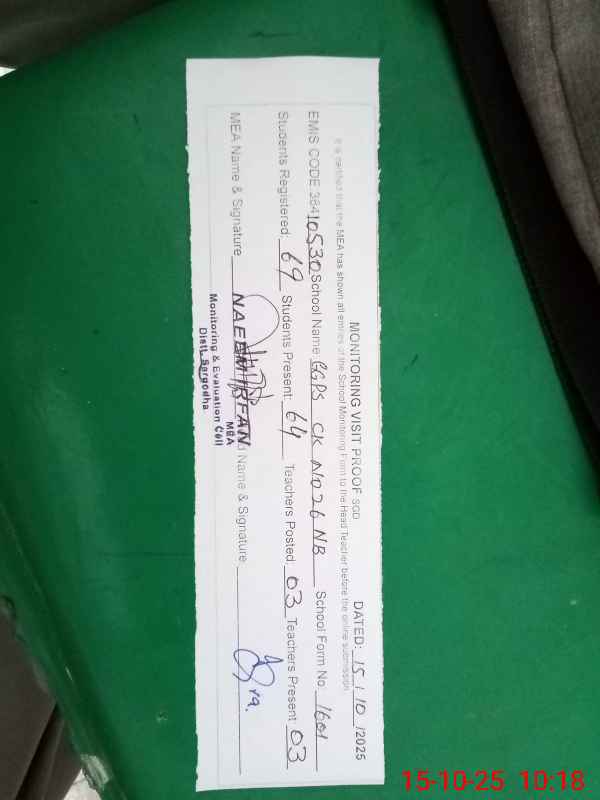 | EMIS Code: 38410530 | Name of School: GGPS CHAK NO.26 NB | |||