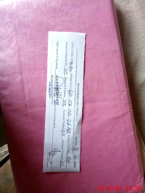 | EMIS Code: 38410180 | Name of School: GPS CHAK NO.26 NB | |||