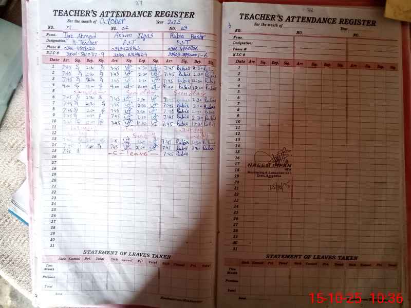 | CNIC | Full Name | Designation | R/C | Absence During Last Calender Month |