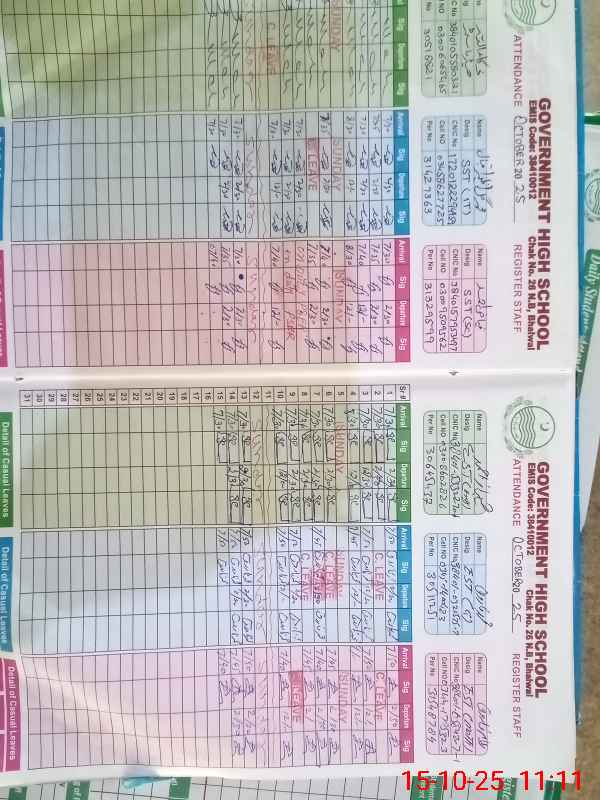 | CNIC | Full Name | Designation | R/C | Absence During Last Calender Month |