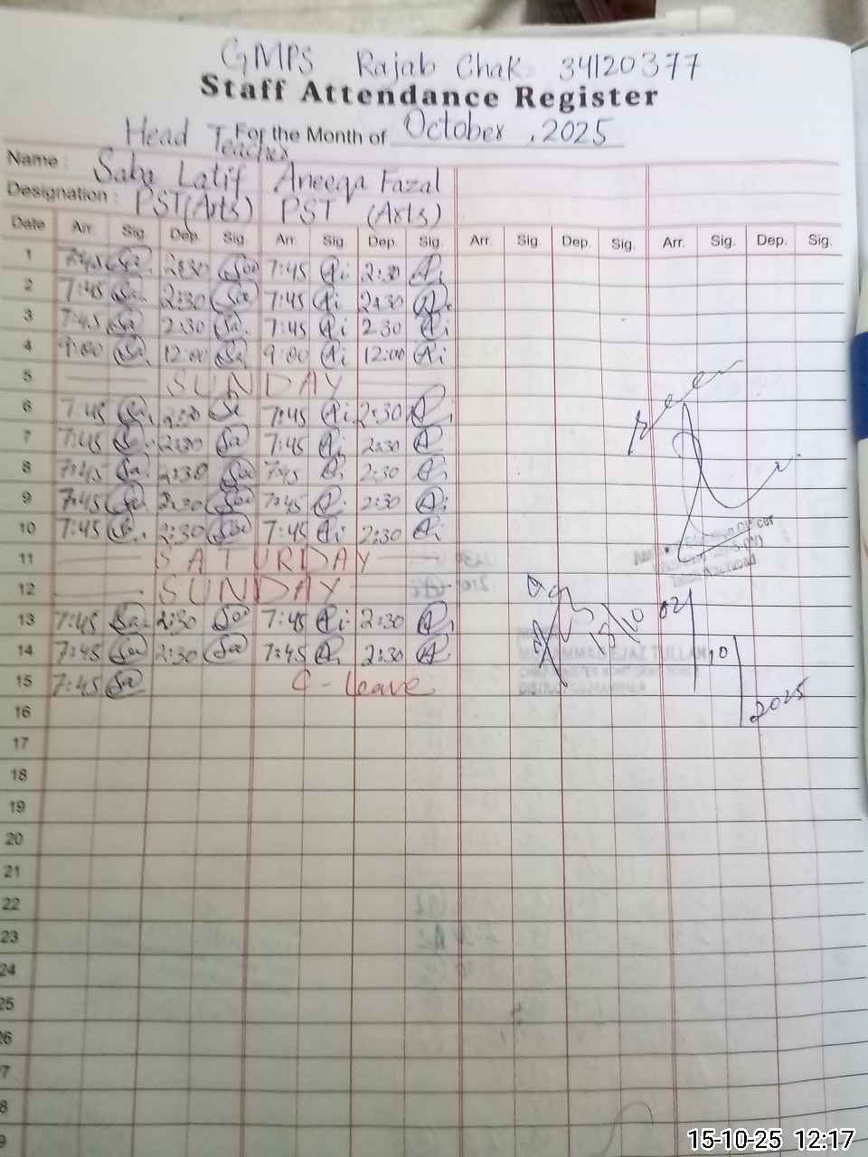 | Name: Sa**** La**** Designation: (School Headmaster's/Headmistress's) ESE Arts Phone/Cell Number: 03**** |