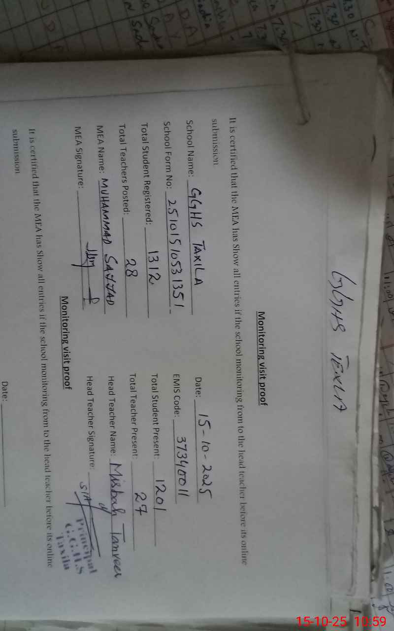 | EMIS Code: 37340011 | Name of School: GGHS TAXILA | |||