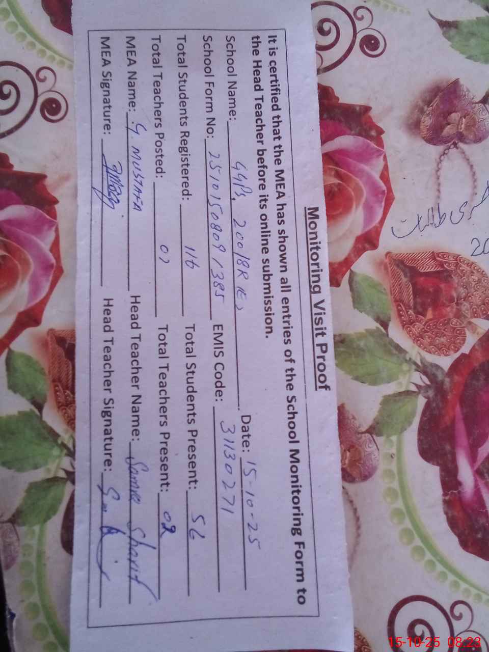 | Certified that this School was Inspected by the Undersigned MEA/DMO Today and the Information Stated Above is as Per Record. | |||||