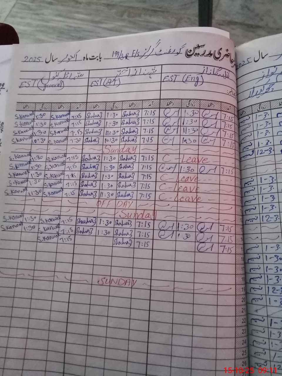 | CNIC | Full Name | Designation | R/C | Absence During Last Calender Month |
