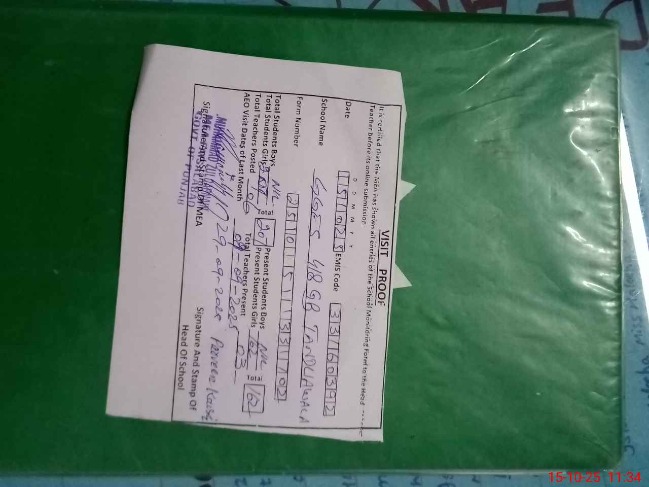 | EMIS Code: 33160392 | Name of School: GGES 418 GB | |||