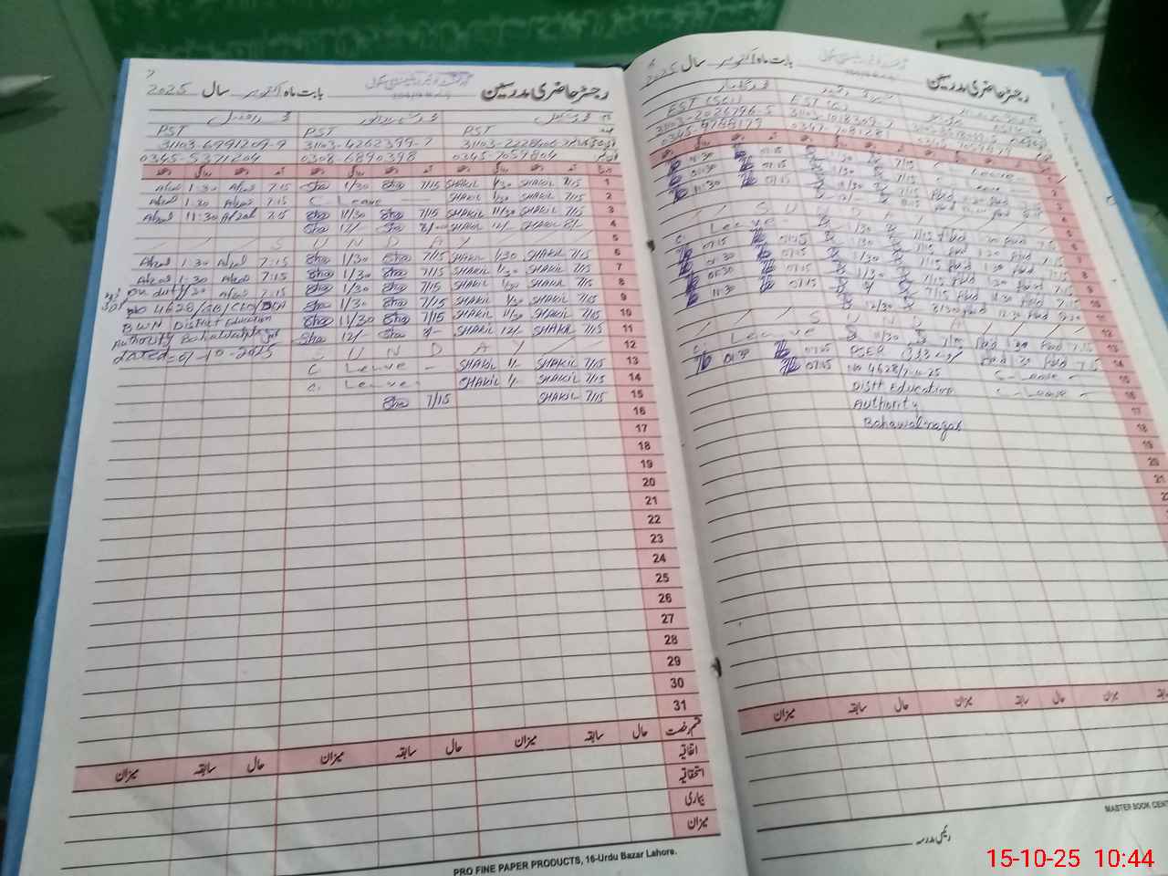 | CNIC | Full Name | Designation | R/C | Absence During Last Calender Month |