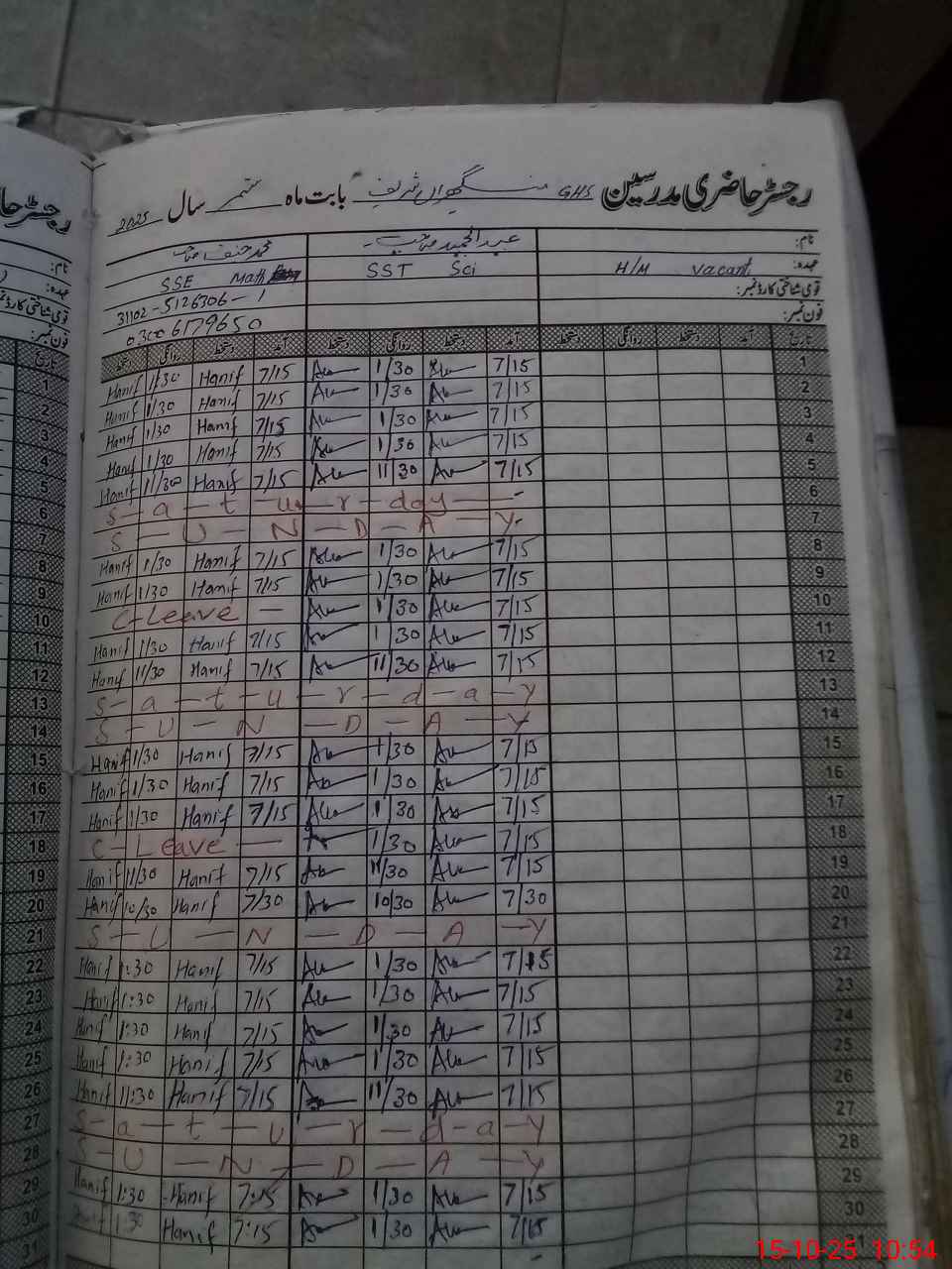 | Name: Ab**** Ha**** Designation: (School Headmaster's/Headmistress's) HEAD MASTER Phone/Cell Number: 03**** |