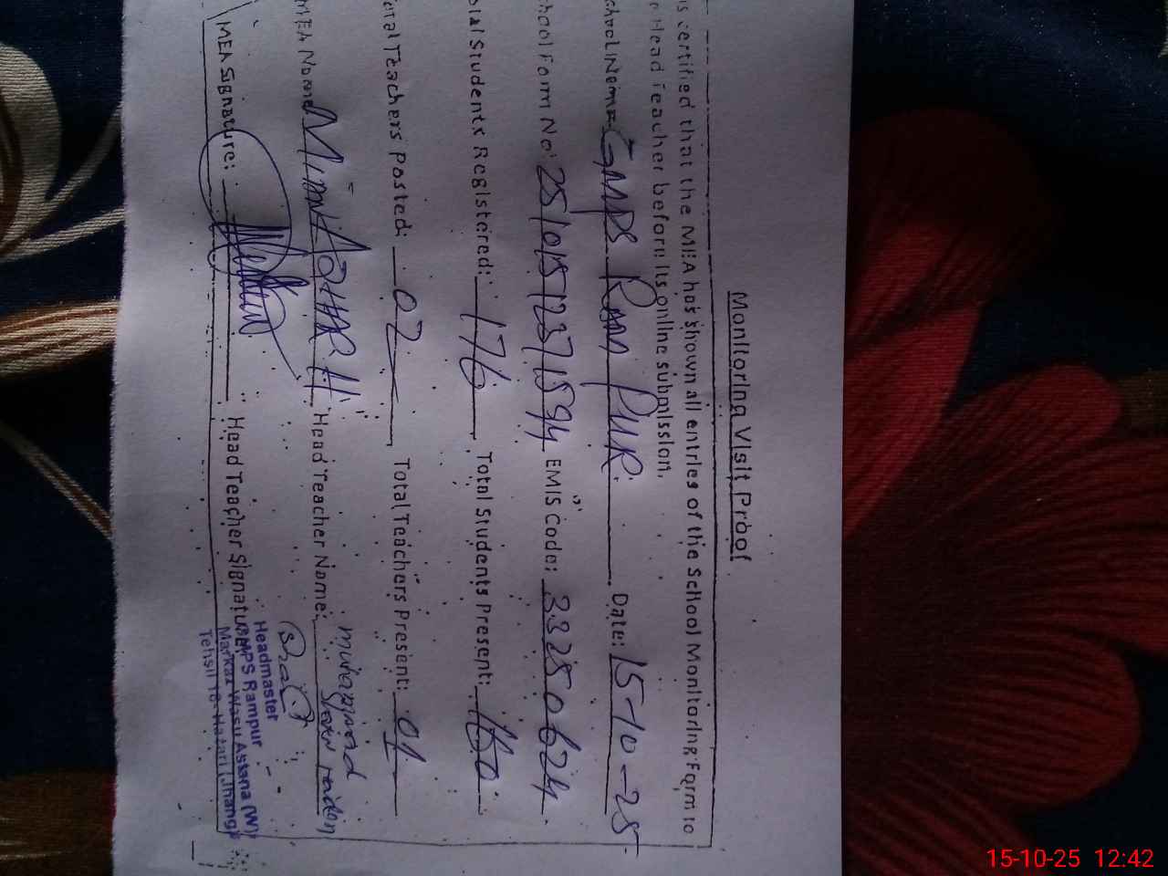 | EMIS Code: 33250624 | Name of School: GMPS RAM PUR KOT NOWLAN | |||