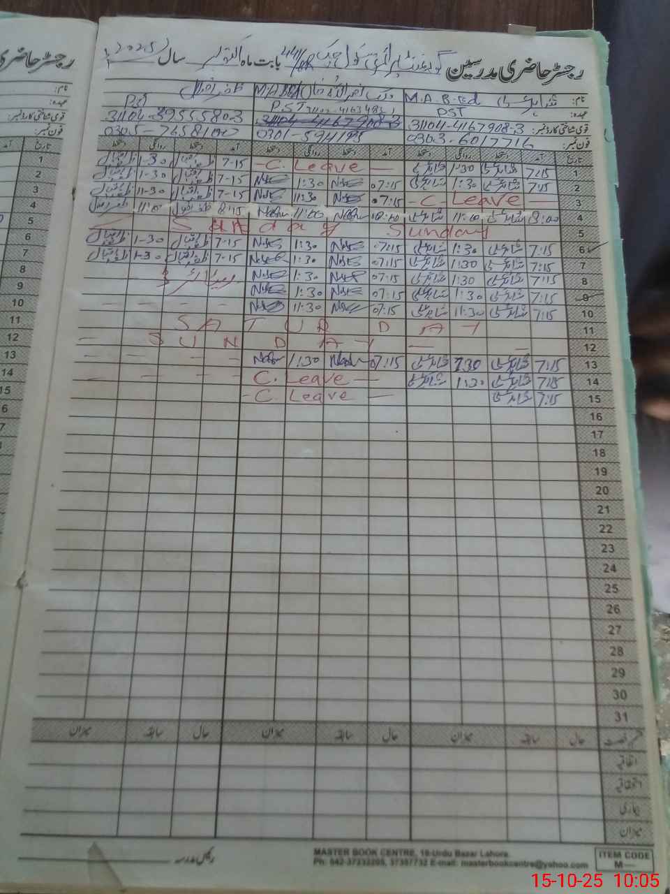| Name: Sh**** Al**** Designation: (School Headmaster's/Headmistress's) PST Phone/Cell Number: 03**** |