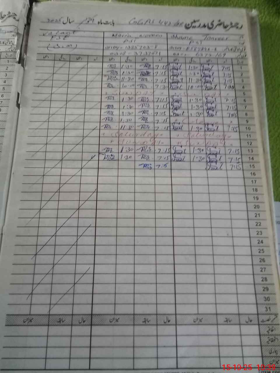 | CNIC | Full Name | Designation | R/C | Absence During Last Calender Month |