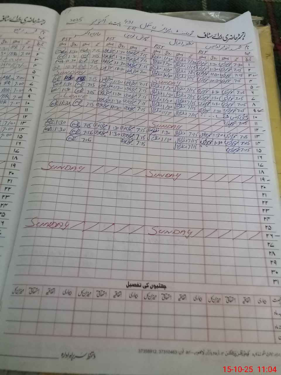 | CNIC | Full Name | Designation | R/C | Absence During Last Calender Month |
