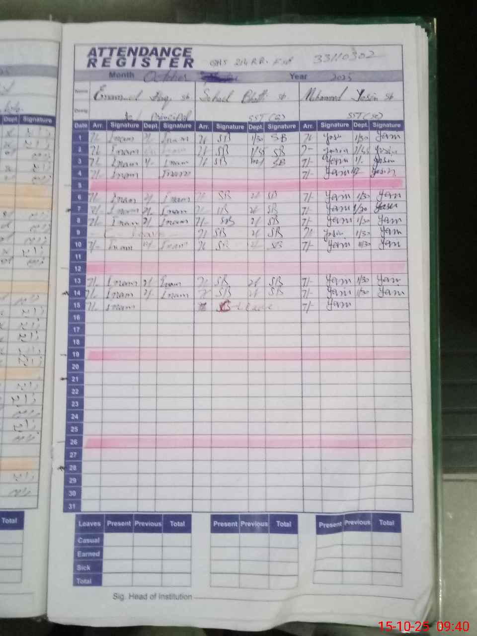 | 33**** | Sh**** Al**** Za**** | EST | Regular | 0 | 0 | 0 | 0 | 0 | 0 | 0 | 0 | 0 | Exam Duty |