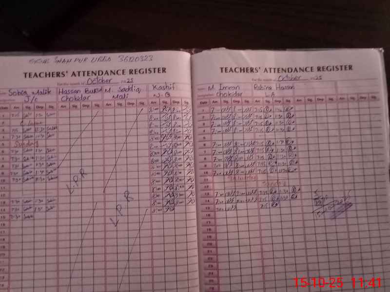 | Total no. of Classrooms: 21 No. of Classrooms Used for Teaching: 12 No. of Classrooms Storing Old Furniture, FTBs, etc: 0Comments if Any: In day time only one non teaching person is working whereas school area is 8 kanal so more staff need extremely for school Teacher guide books record not maintained CHOKIDAR HASSAN BAKSH ABSENT DUE TO NO PROOF OF LPR IS AVAILABLE IN SCHOOL |