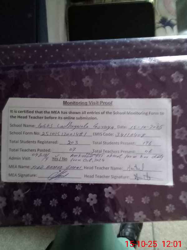 | EMIS Code: 34110408 | Name of School: GGES LADHAY WALA GORAYA | |||