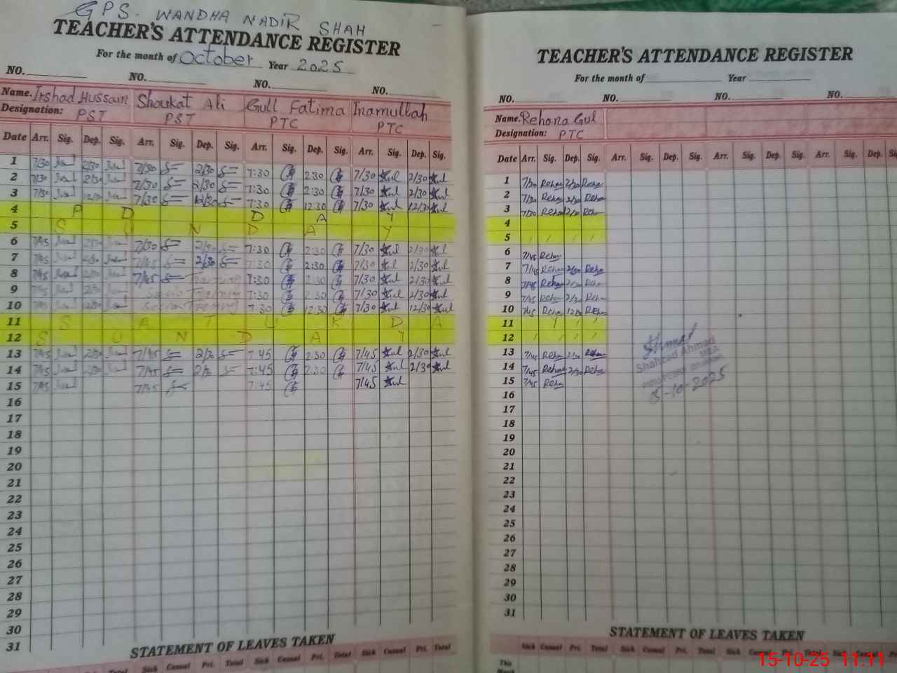 | Name: IR**** HU**** Designation: (School Headmaster's/Headmistress's) PTC/JV Phone/Cell Number: 03**** |