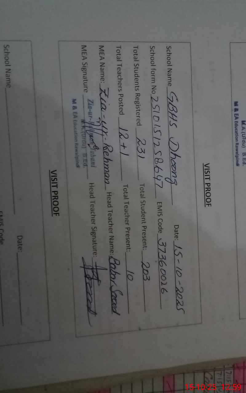 | EMIS Code: 37360026 | Name of School: GHS DHONG | |||