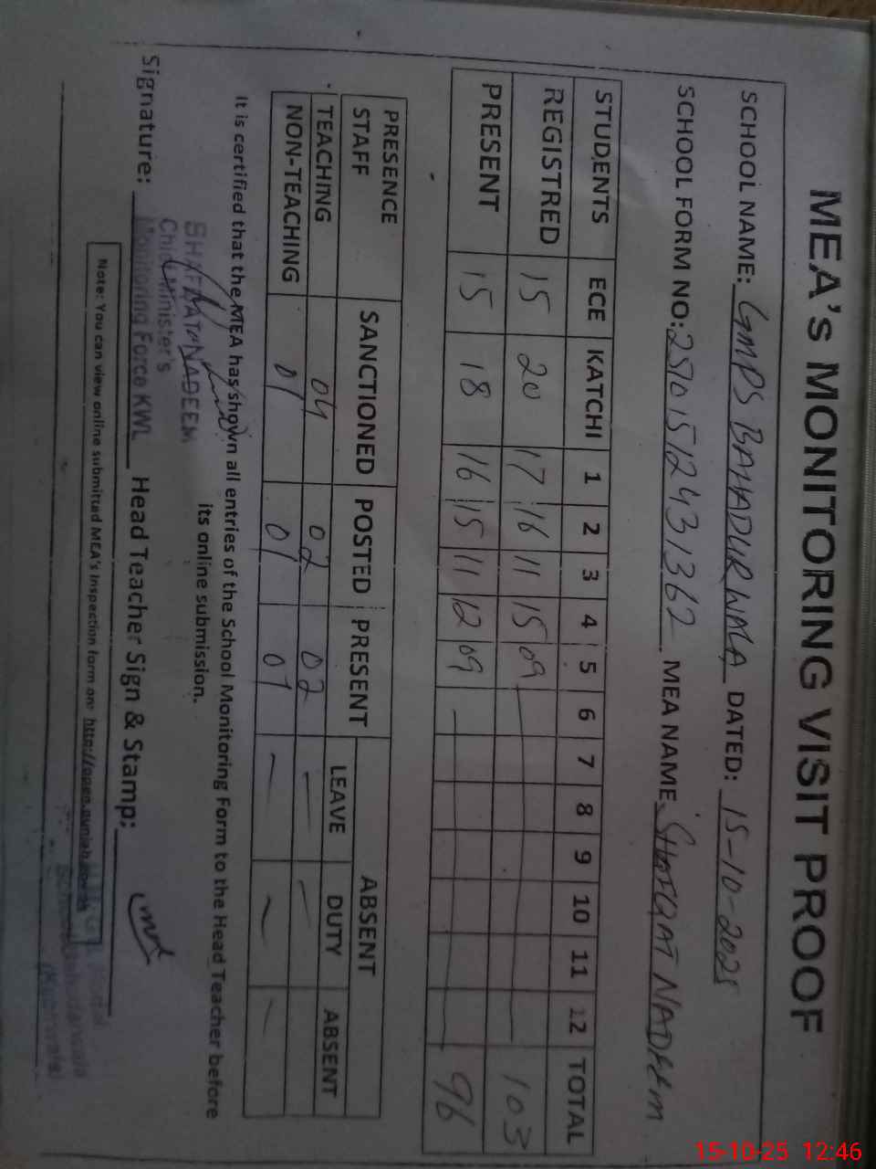 | EMIS Code: 36410376 | Name of School: GMPS BAHADUR WALA, KABIRWALA | |||
