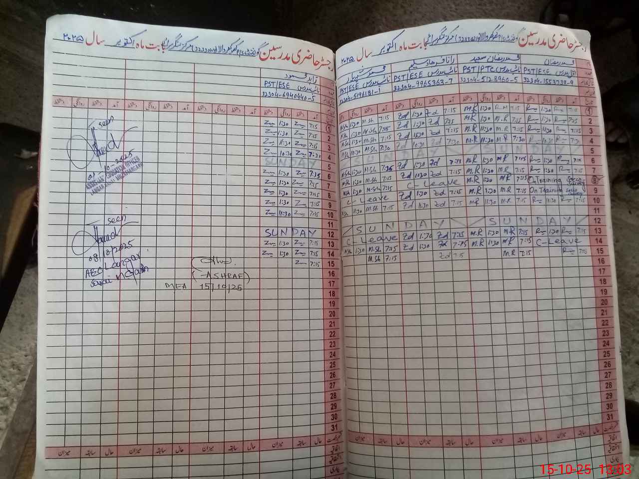 | Name: M.**** Designation: (School Headmaster's/Headmistress's) PST Phone/Cell Number: 03**** |