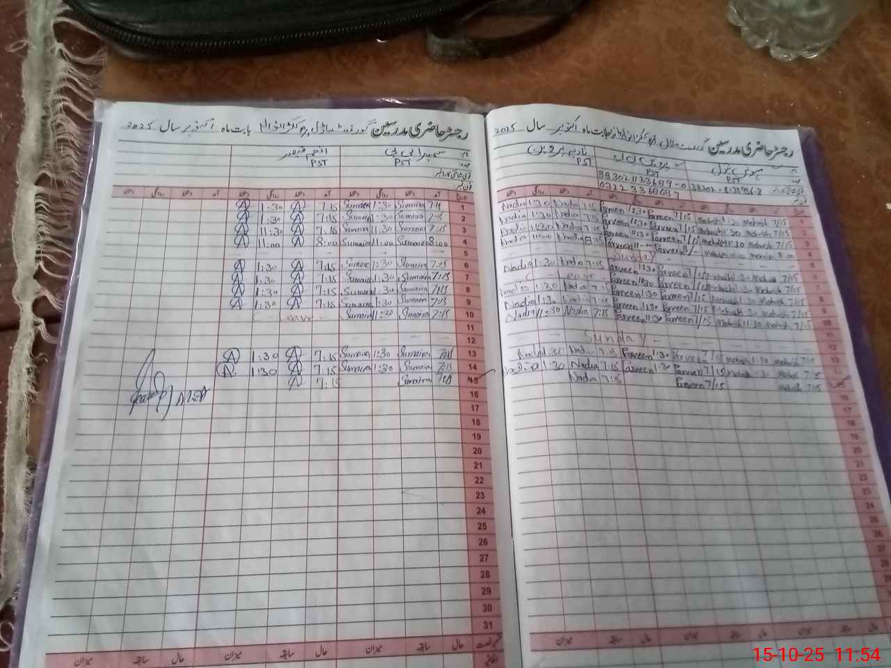 | CNIC | Full Name | Designation | R/C | Absence During Last Calender Month |