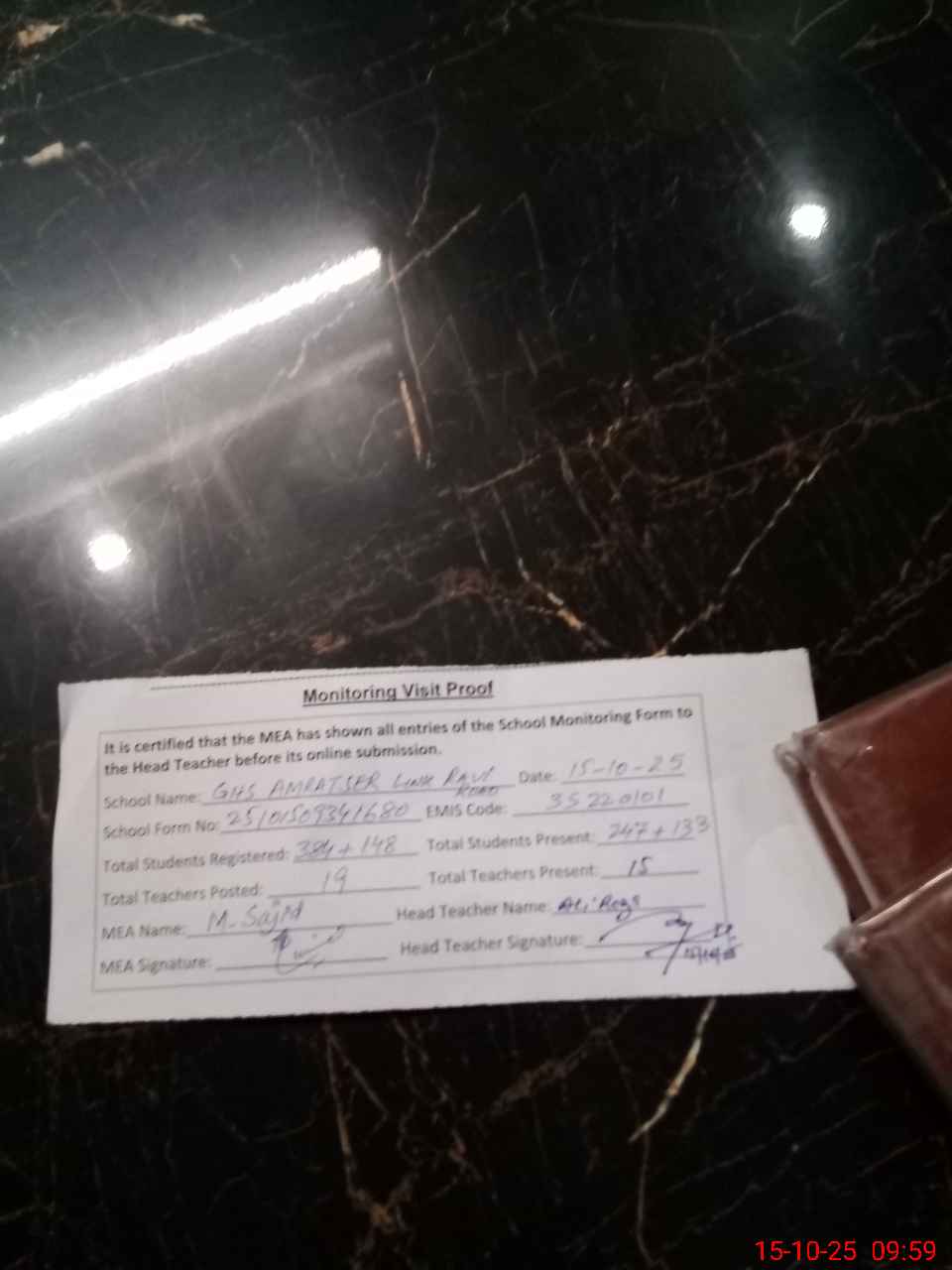 | EMIS Code: 35220101 | Name of School: GHS AMRATSER LINK RAVI ROAD (Newly Upgraded) | |||