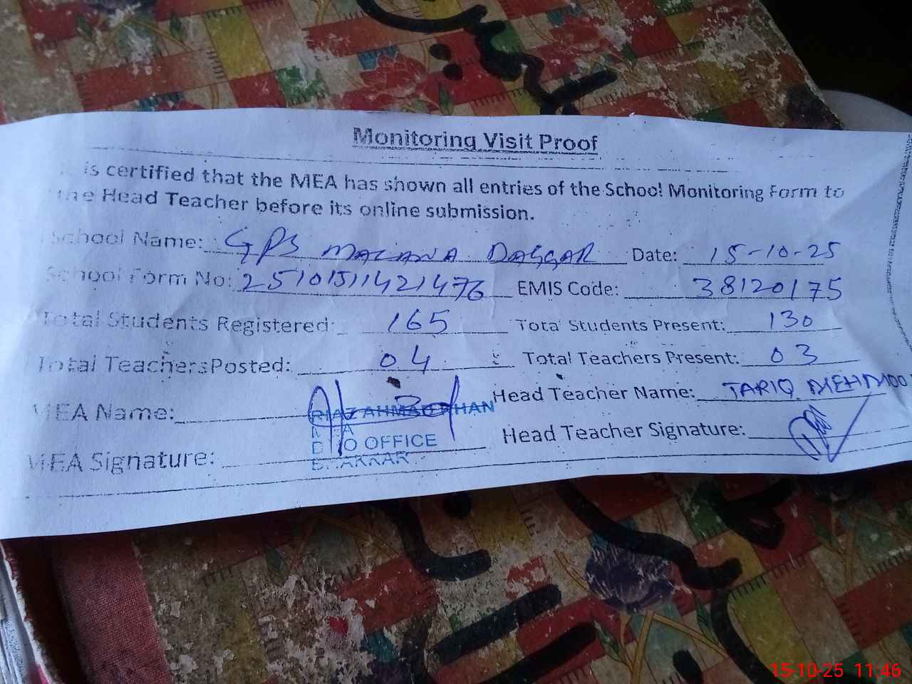 | EMIS Code: 38120175 | Name of School: GPS MALLANA DAGGAR | |||