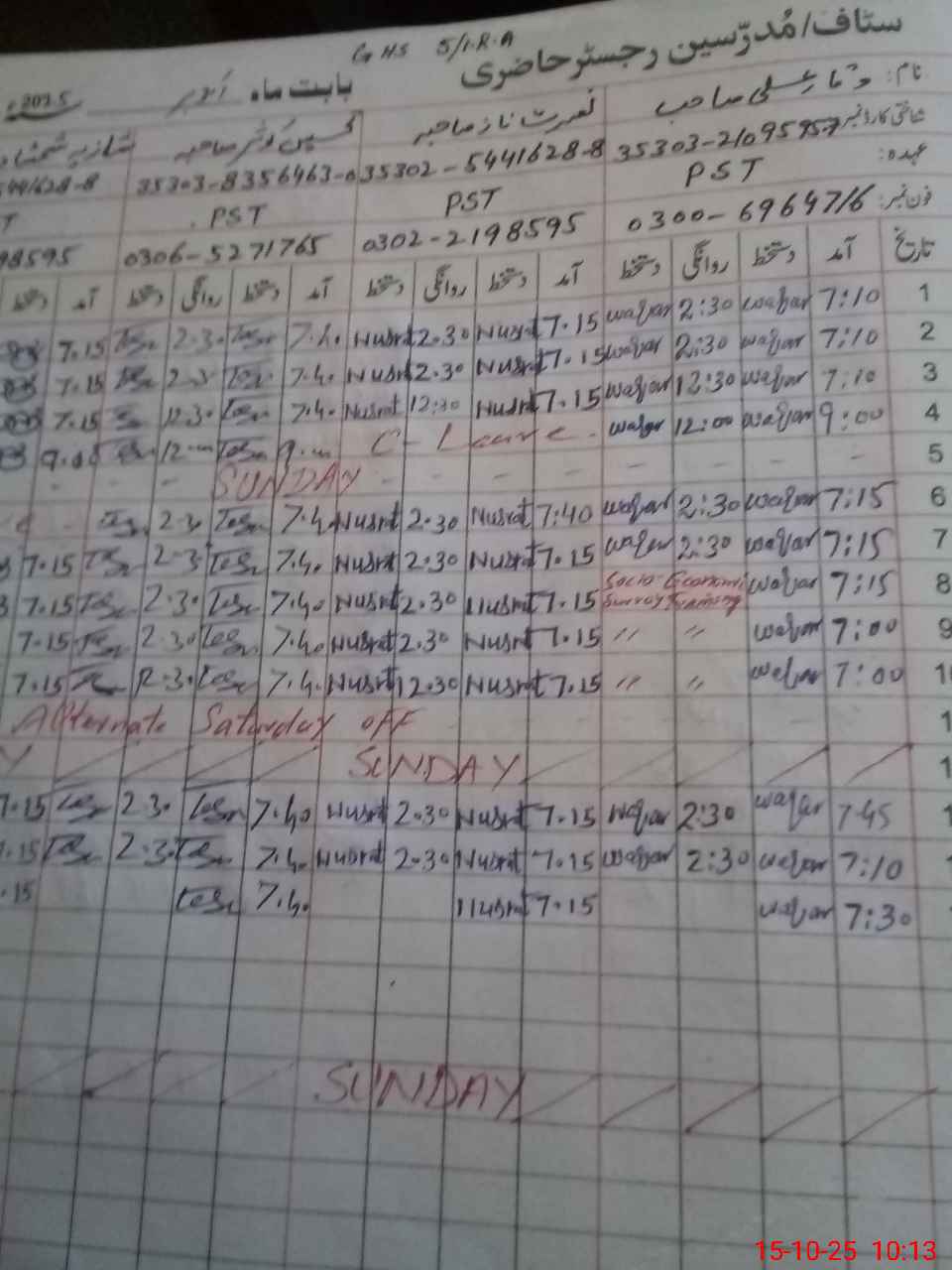 | 35**** | Ba**** Ah**** | SST | Regular | 0 | 0 | 0 | 0 | 0 | 0 | 0 | 0 | 0 | Exam Duty |