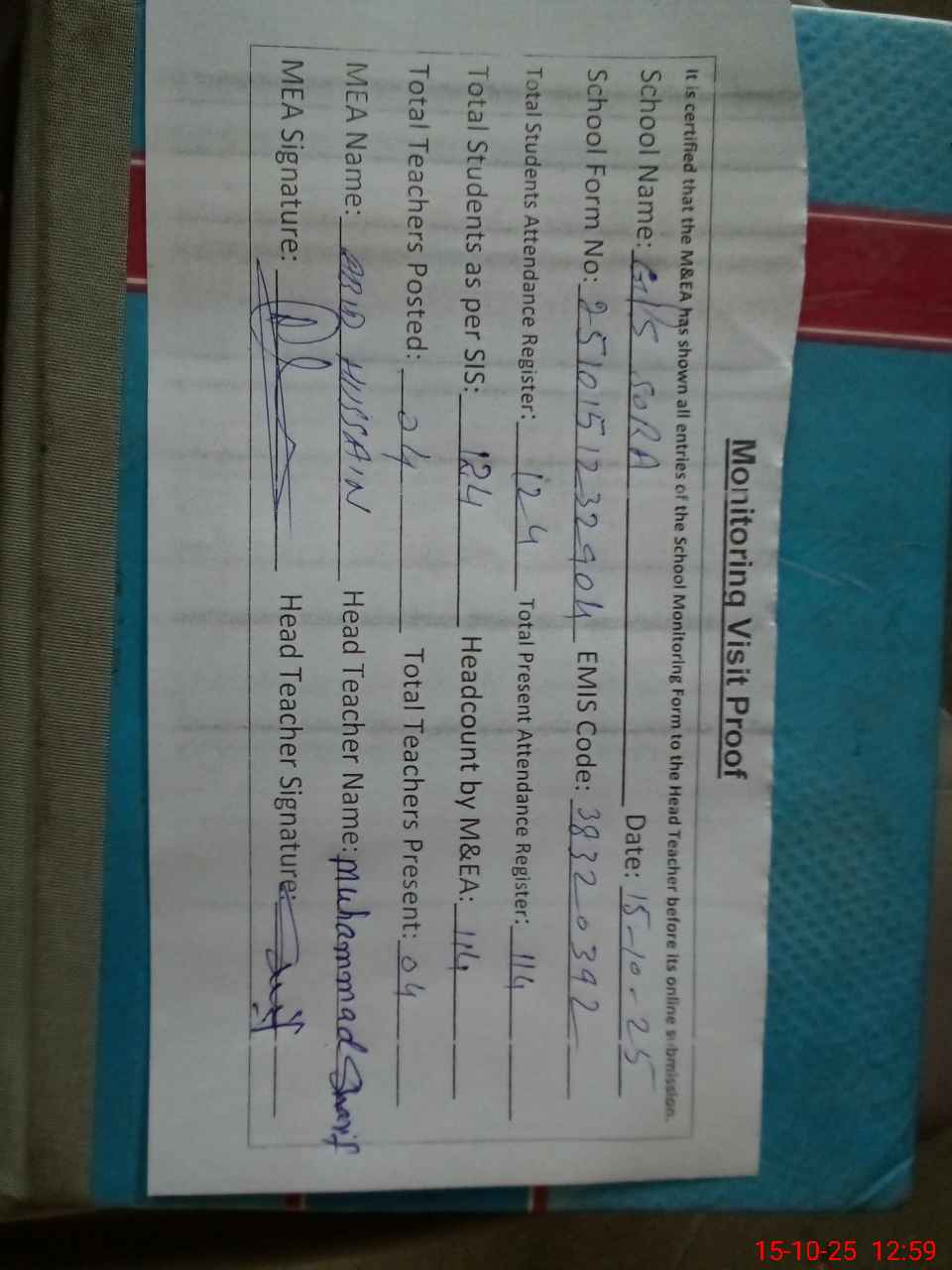 | EMIS Code: 38320392 | Name of School: GPS SORA | |||