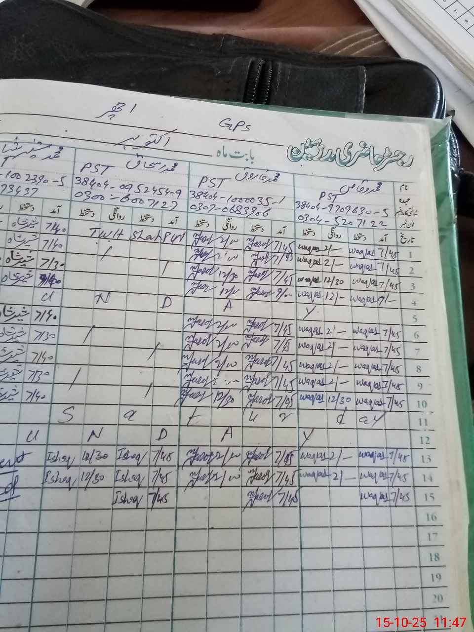 | CNIC | Full Name | Designation | R/C | Absence During Last Calender Month |
