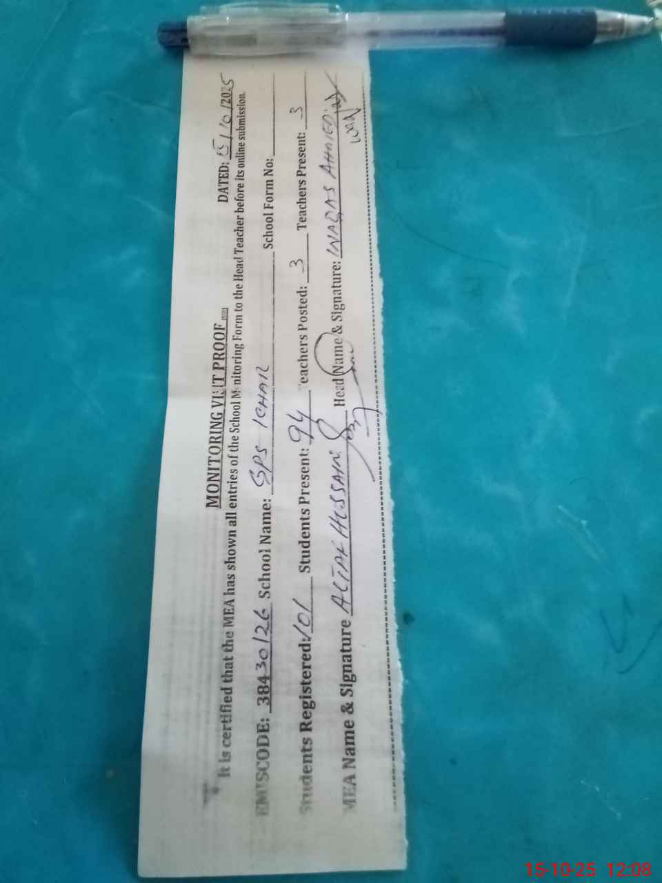 | Attendance Register | Head Teacher | MEA with School | Visit Proof |