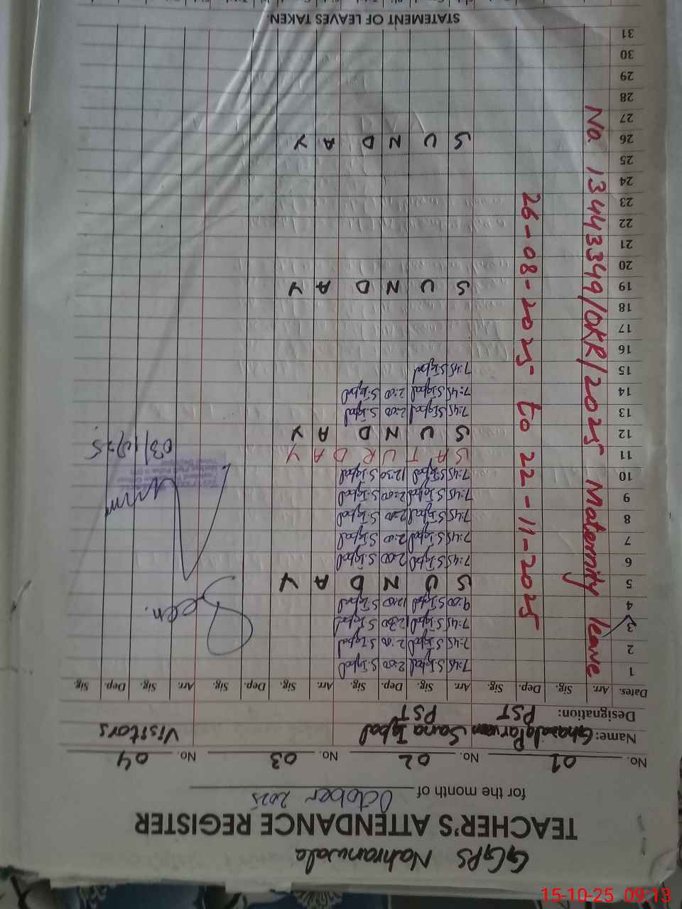 | 35**** | Gh**** Pe**** | PST | Regular | 30 | 0 | 0 | 30 | 0 | 0 | 0 | 0 | 0 | Maternity |