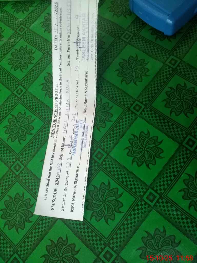 | Attendance Register | Head Teacher | MEA with School | Visit Proof |