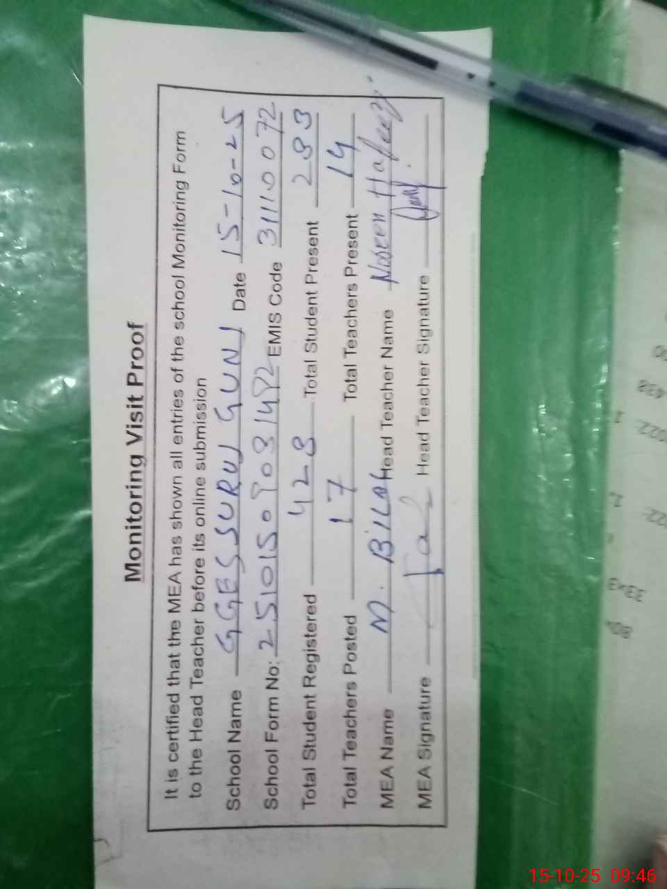 | EMIS Code: 31110072 | Name of School: GGES SURUJ GUNJ | |||