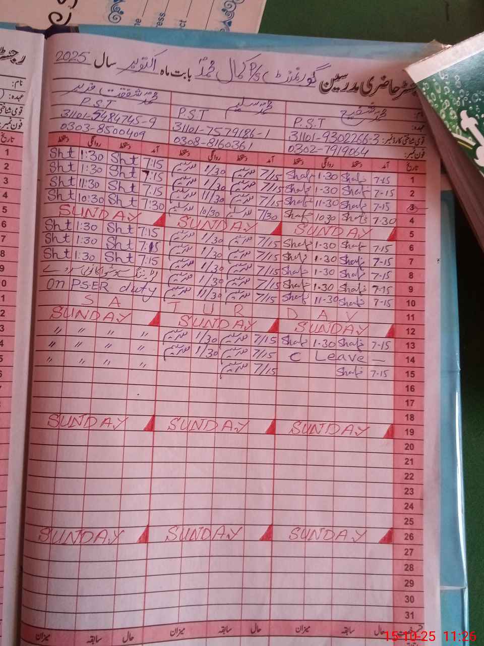 | CNIC | Full Name | Designation | R/C | Absence During Last Calender Month |