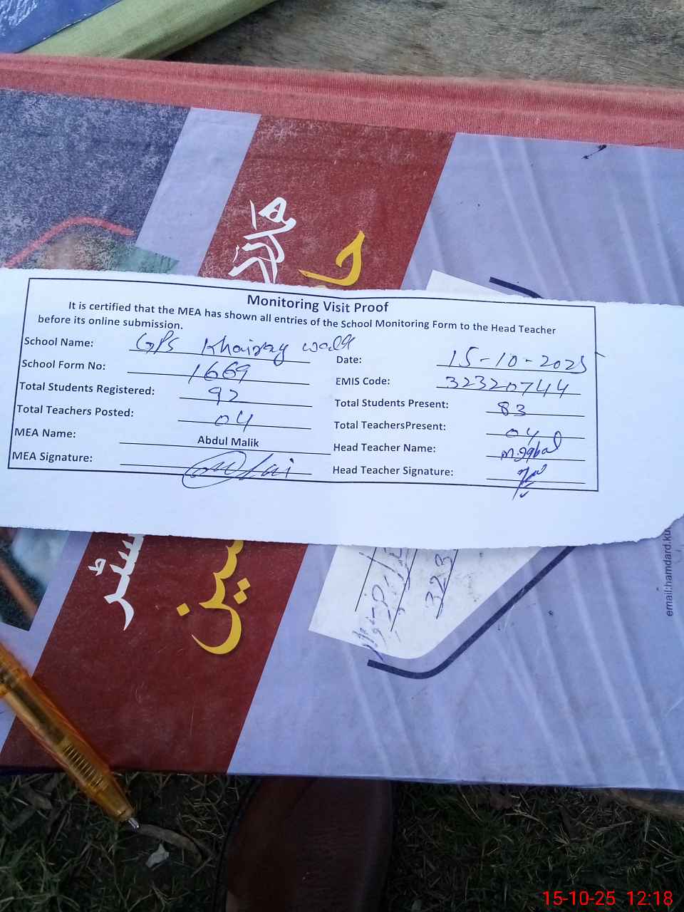 | EMIS Code: 32320744 | Name of School: GPS KHAIRAY WALA | |||