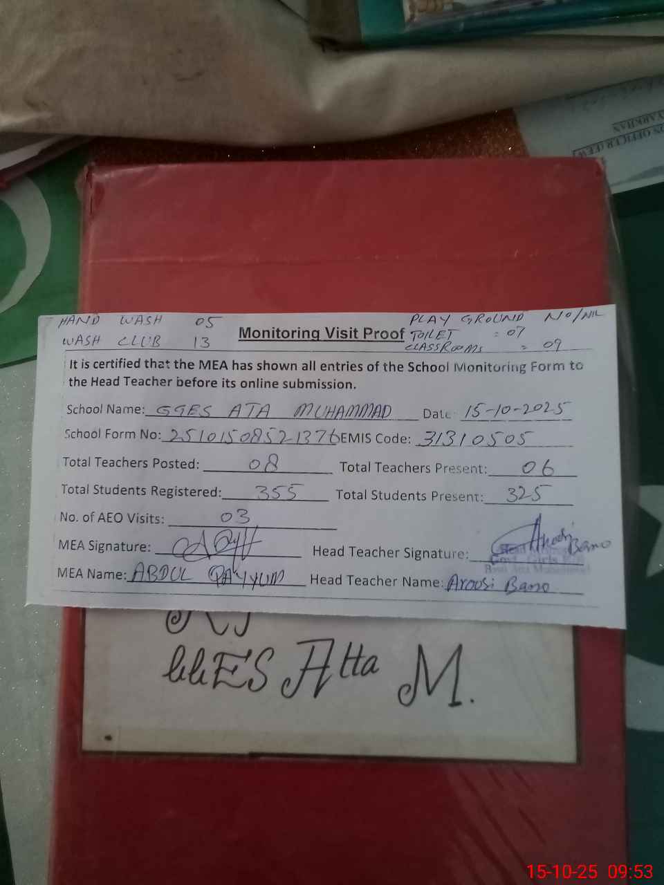 | EMIS Code: 31310505 | Name of School: GGES ATA MUHAMMAD | |||