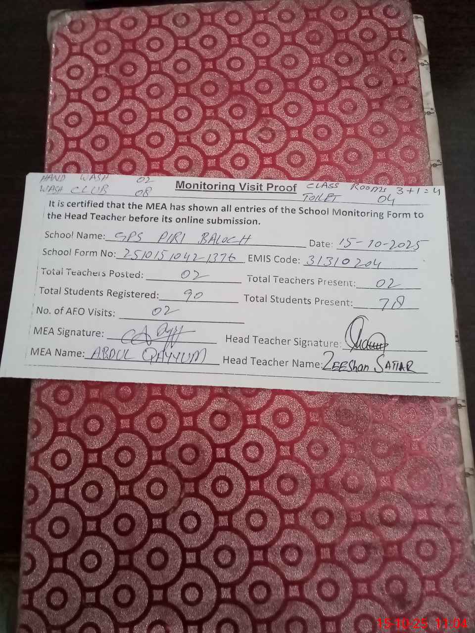 | EMIS Code: 31310204 | Name of School: GPS PIRA BALUCH (After Noon) | |||