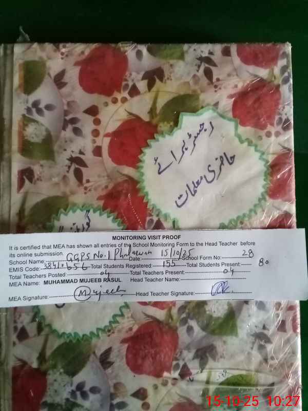 | EMIS Code: 38410656 | Name of School: GGPS NO. 1 PHULARWAN | |||